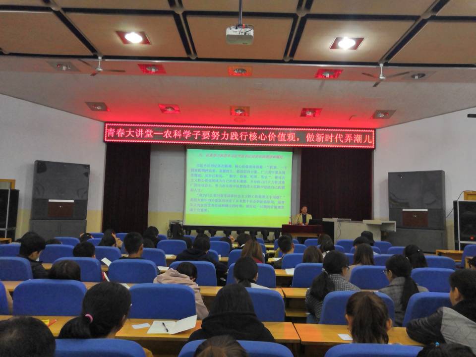 2018年10月22日晚,BEAT365英国官网举办了《农科学子要努力践行核心价值观,做新时代弄潮儿》的青春大讲堂专题讲座,学院党委负责人作了专题报告。 150名青年学生参加了活动。