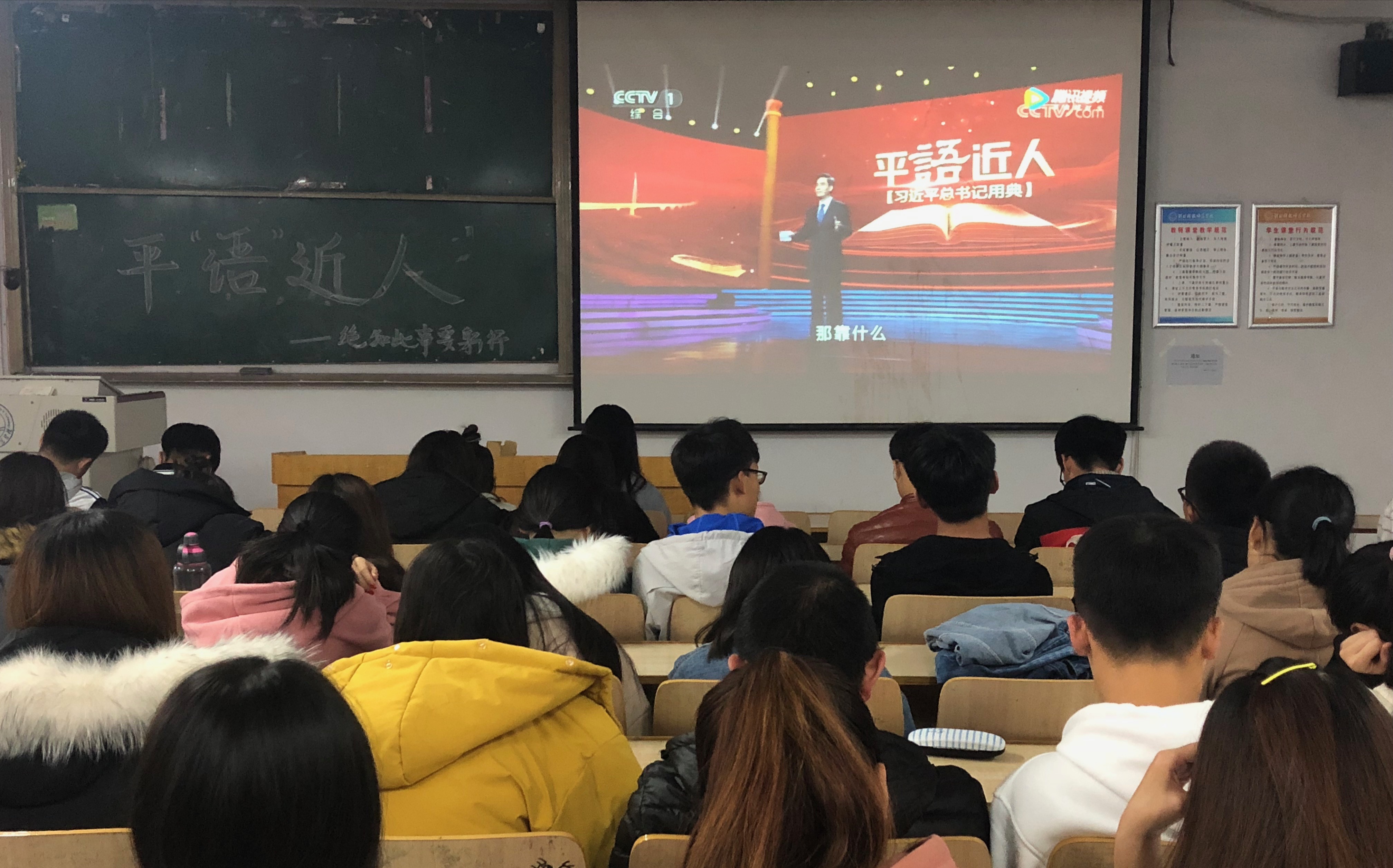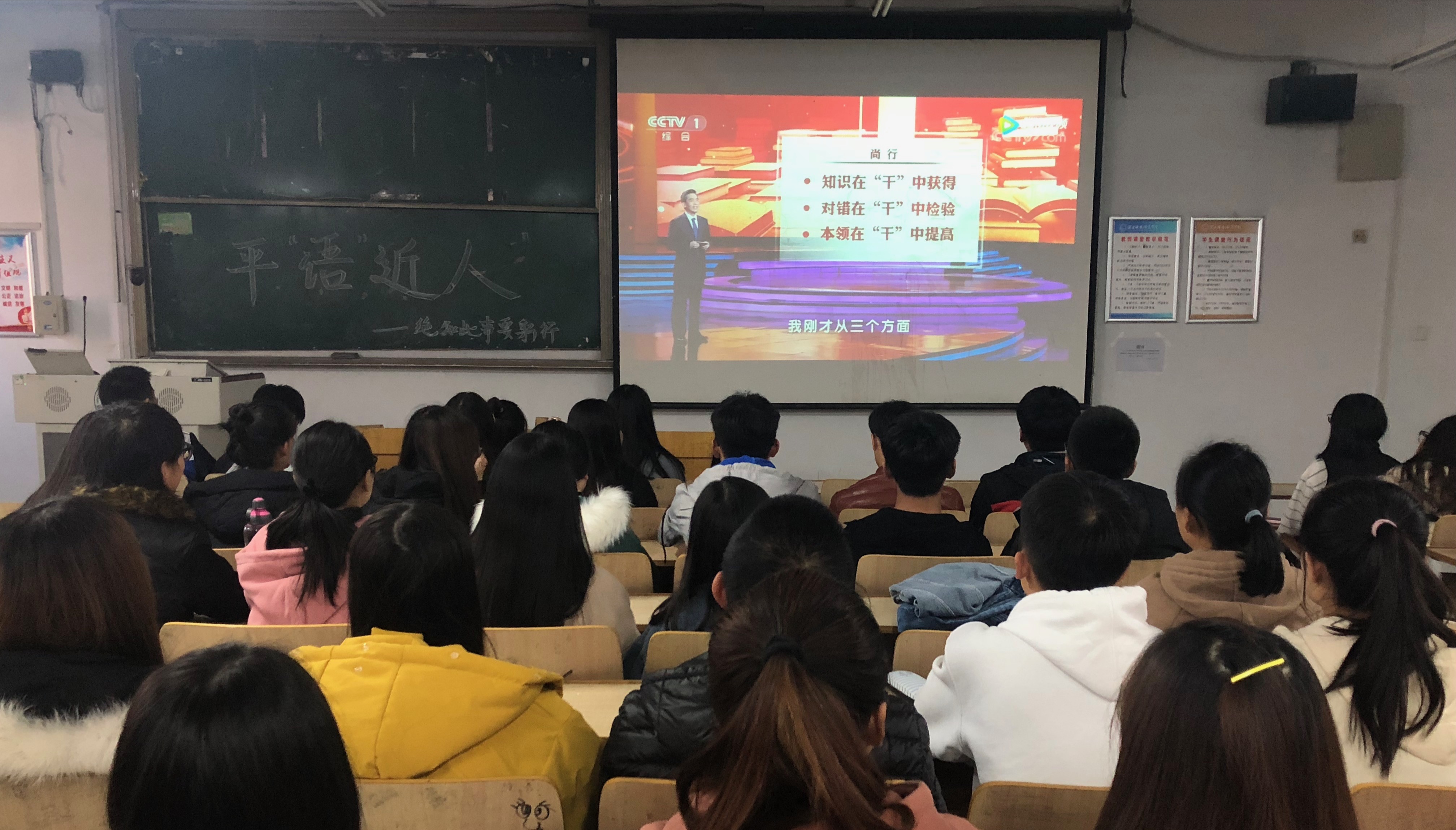 为不断把学习十九大活动引向深入,进一步推动习近平新时代中国特色社会思想的生动阐释与广泛传播。2018年11月10日,BEAT365英国官网党委分两场组织学生党组织、学生班团组织近280名青年学生党员、入党积极分子、共青团员等学习收看了中共中央宣传部、中央广播电视总台联合创作的《百家讲坛》特别节目《平“语”近人——习近平总书记用典》。在学院广大青年学生中营造浓厚的学习习近平新时代中国特色社会主义思想的氛围。