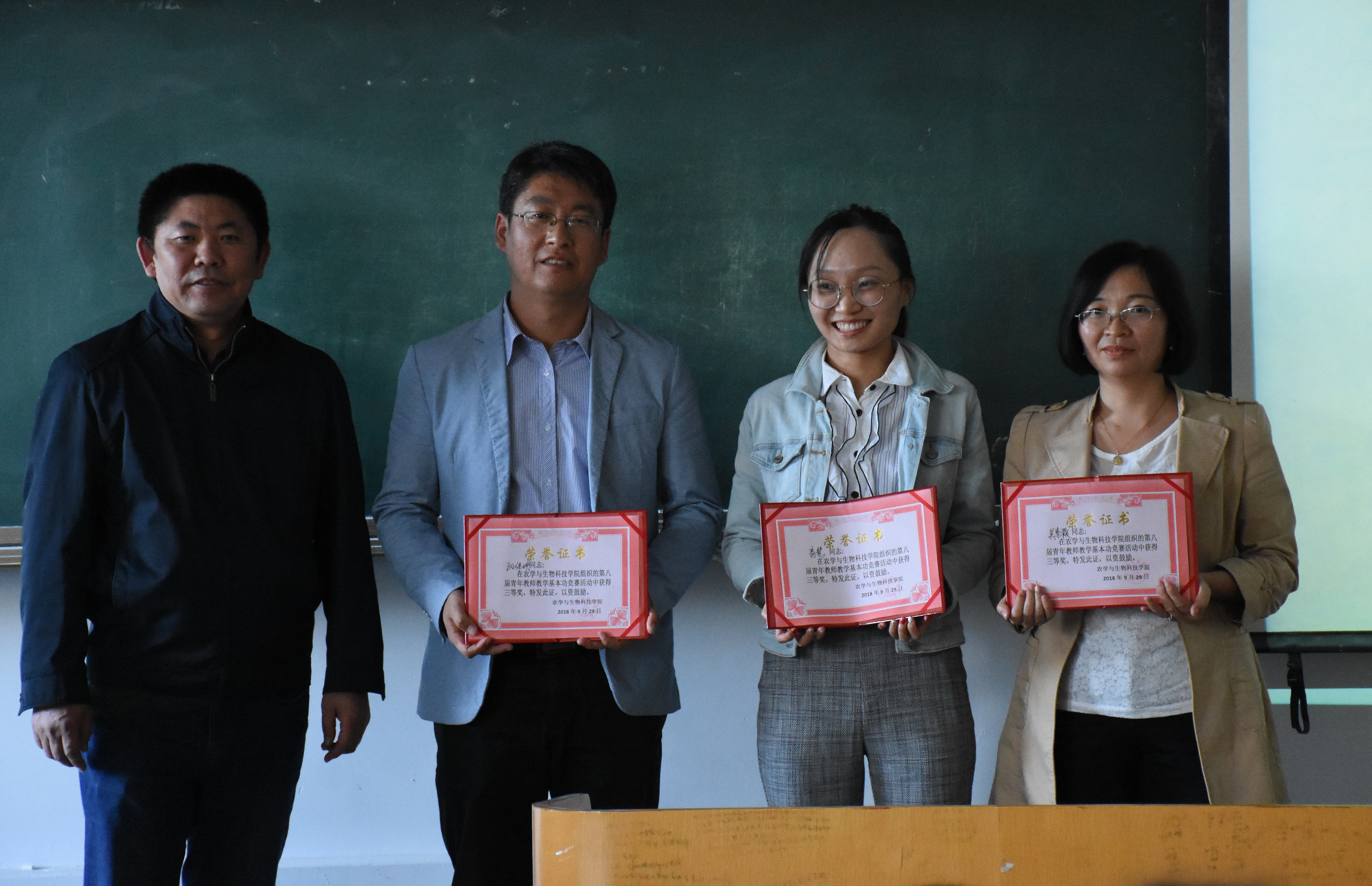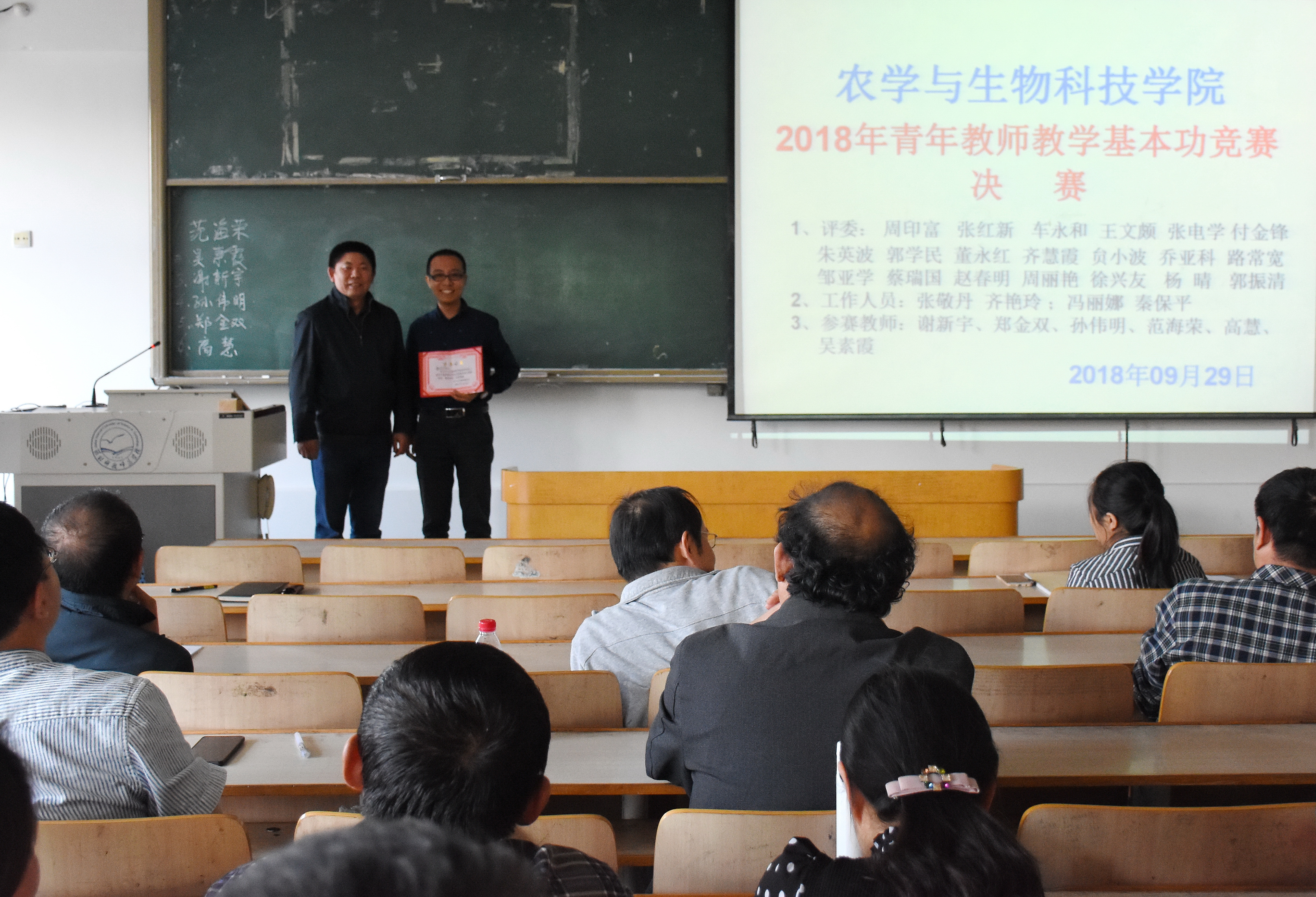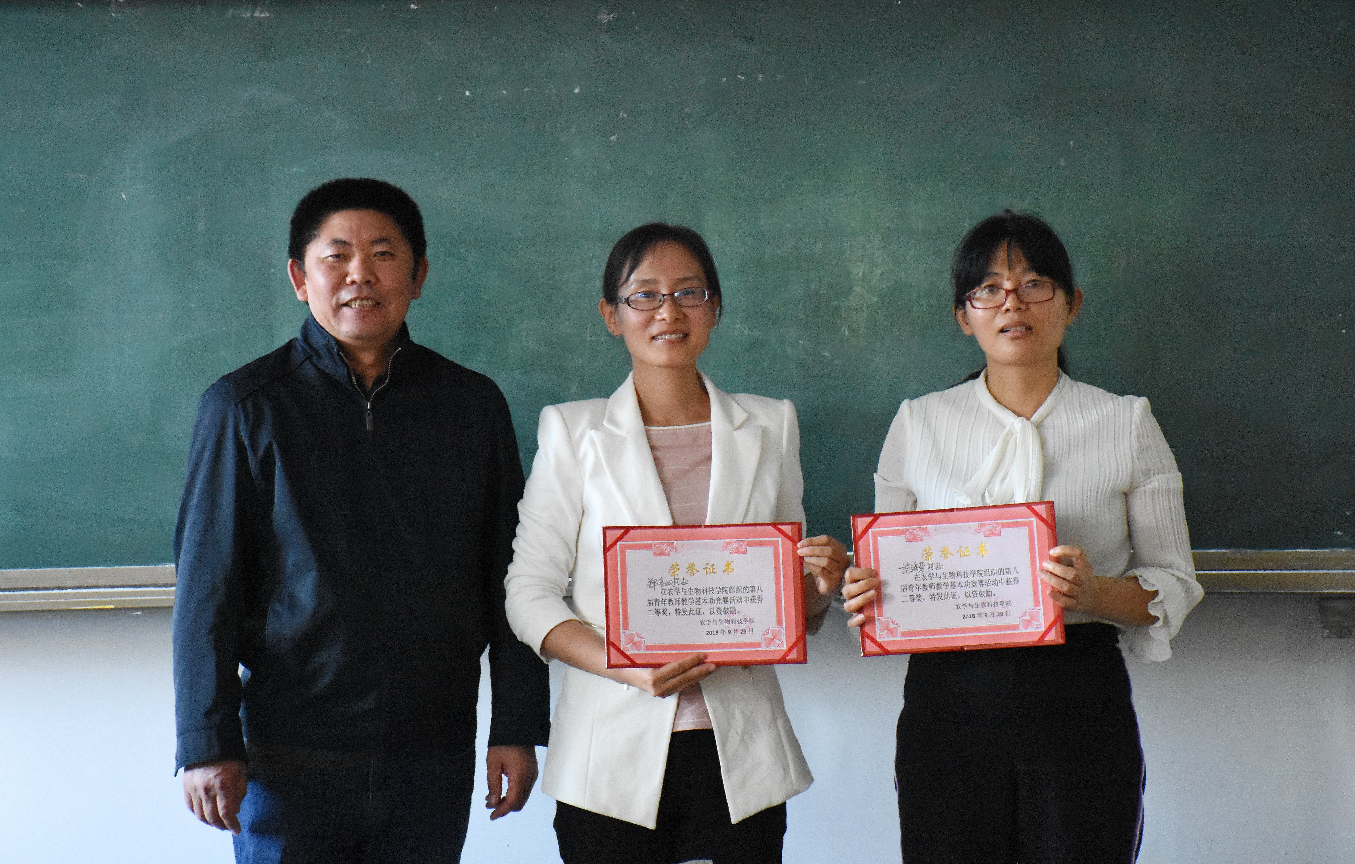 学院工会主席宣读了比赛结果,大赛共评选出1等奖1名,资源与环境教学部谢新宇;二等奖2名,植物生产教学部郑金双、资源与环境教学部范海荣;三等奖3名,生物科学教学部高慧、孙伟明、资源与环境教学部吴素霞