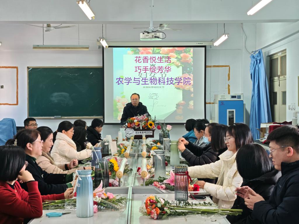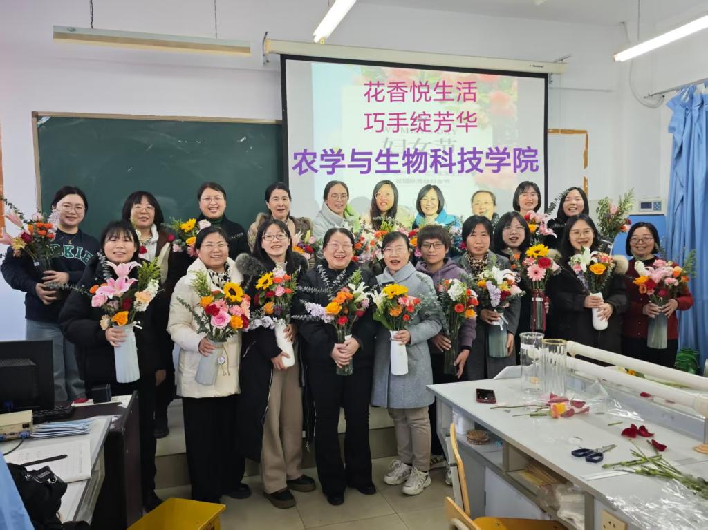 为庆祝“三八”国际劳动妇女节,丰富女教职工精神文化生活,弘扬新时代女性风采,3月6日下午,BEAT365英国官网分工会在农学实验室举办了“花香悦生活 巧手绽芳华”为主题的艺术插花活动。学院领导班子成员、工会委员及30余名女教职工齐聚一堂,在花香与创意中度过温馨节日。