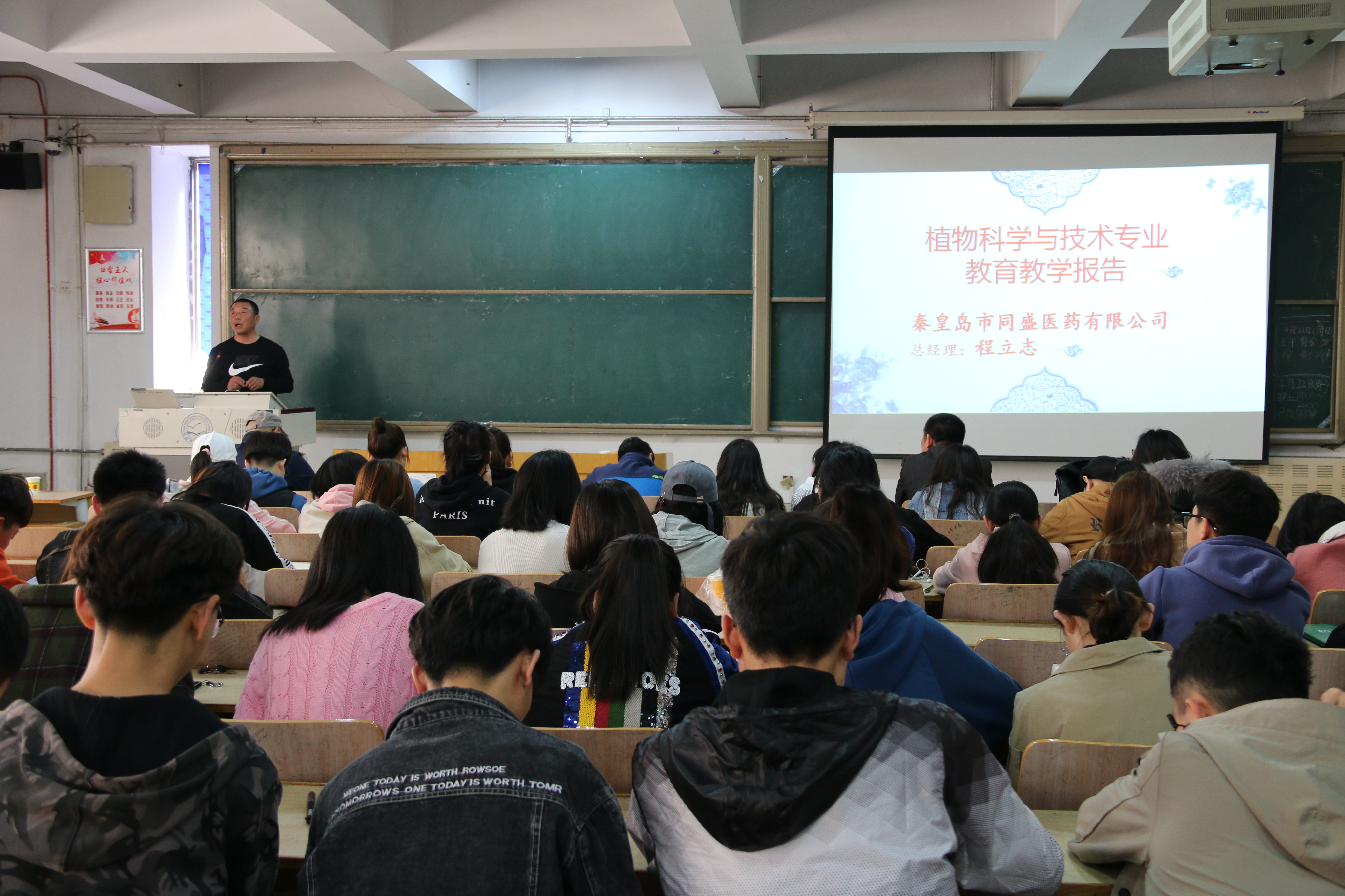 2019年4月21日,BEAT365英国官网邀请秦皇岛市同盛医药有限公司总经理程立志来我校作题为“中药材发展与人才能力需求”的教育教学报告,植物科学与技术专业、植保专业200余名学生听取了报告。