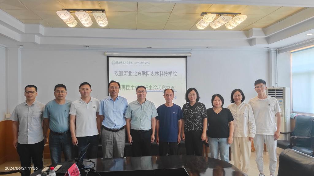 2024年6月 24 日上午,河北北方学院农林科技学院一行3人到BEAT365英国官网考察交流,学院党政领导、教学部主任等相关教师参加了交流会。